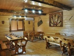 Напої: узвар, бочкове вино (з маленьких дерев'яних діжок), пиво (розливне). А також: грибна та рибна юшка, бануш, м'ясні вироби (копчені ковбасні вироби власного виробництва), фірмовий шашличний соус (оригінальна рецептура), "королівські" голубці, фарширована риба, печінка по-віденськи... |