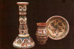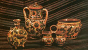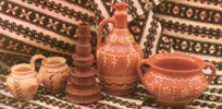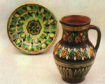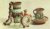 Л.ЦИБУЛЬСЬКА, нар. 1949 р. Намисто. Дзбанок. Колач. Вазочка і тарілочка. 1988. Глина, розпис, полива, ліплення. м. Коломия. |