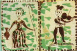 Автор невідомий. Кахлі "Жінка з граблями", "Скрипаль". Кінець ХVІІІ ст. Глина, розпис, полива. м. Коломия |