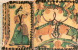 Дмитро ЗІНТЮК (ЗОНДЮК?) Середина ХІХ ст. "Жінка з чаркою", "Два цапки на кладці" Глина, розпис, полива. с. Пістинь, Косівського р-ну. |