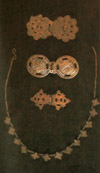 Народні майстри створили великий асортимент металевих виробів хатнього вжитку, прикрас для одягу, деталей кінської збруї, зброї, оздоблених геометричним орнаментом — трикутниками, ромбиками, квадратами. Техніка — лиття, кування, гравірування, інкрустація тощо.